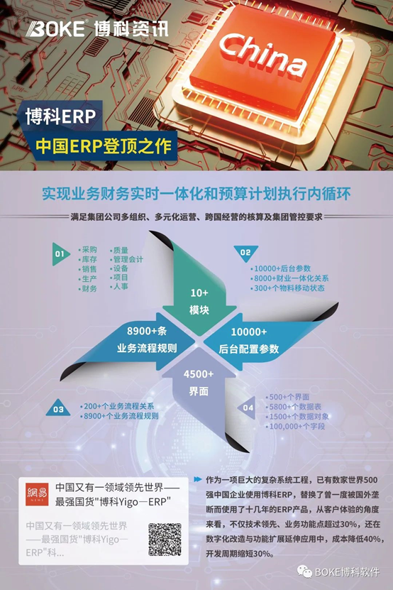 依托Yigo技术,博科ERP不仅能提供多行业、多业态、多阶段的企业业务需要,还可快速定制新的业务流程,保持企业业务系统与管理同步,与市场同步,与时势同步,实现业务财务实时一体化和预算计划执行内循环,已经成为了众多央企、大型企业可信赖的选择,打破了国外软件在高端ERP应用上的垄断地位。