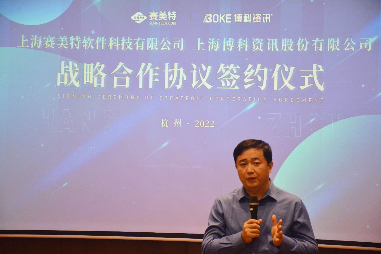 9月24日上午,博科资讯与上海赛美特软件科技有限公司(下称“赛美特”)在杭州签署战略合作。博科资讯董事长沈国康、赛美特董事长李钢江出席了签约仪式,双方将在半导体/泛半导体智能制造与企业数字化管理等相关领域开展战略合作。